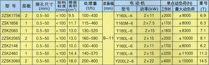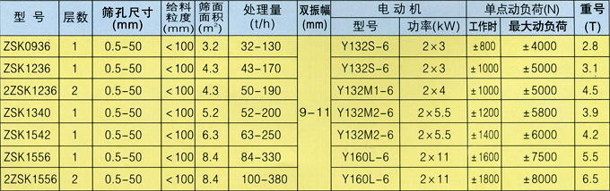 ZSK型振動篩為直線運動,全系列共有二十四種規(guī)格,可供選煤、選礦、發(fā)電、制糖、制鹽等工業(yè)部門,對中細粒度物料進行干濕式篩分、脫水、脫介、脫泥。結(jié)構(gòu)先進、堅固耐用、振動噪聲小。